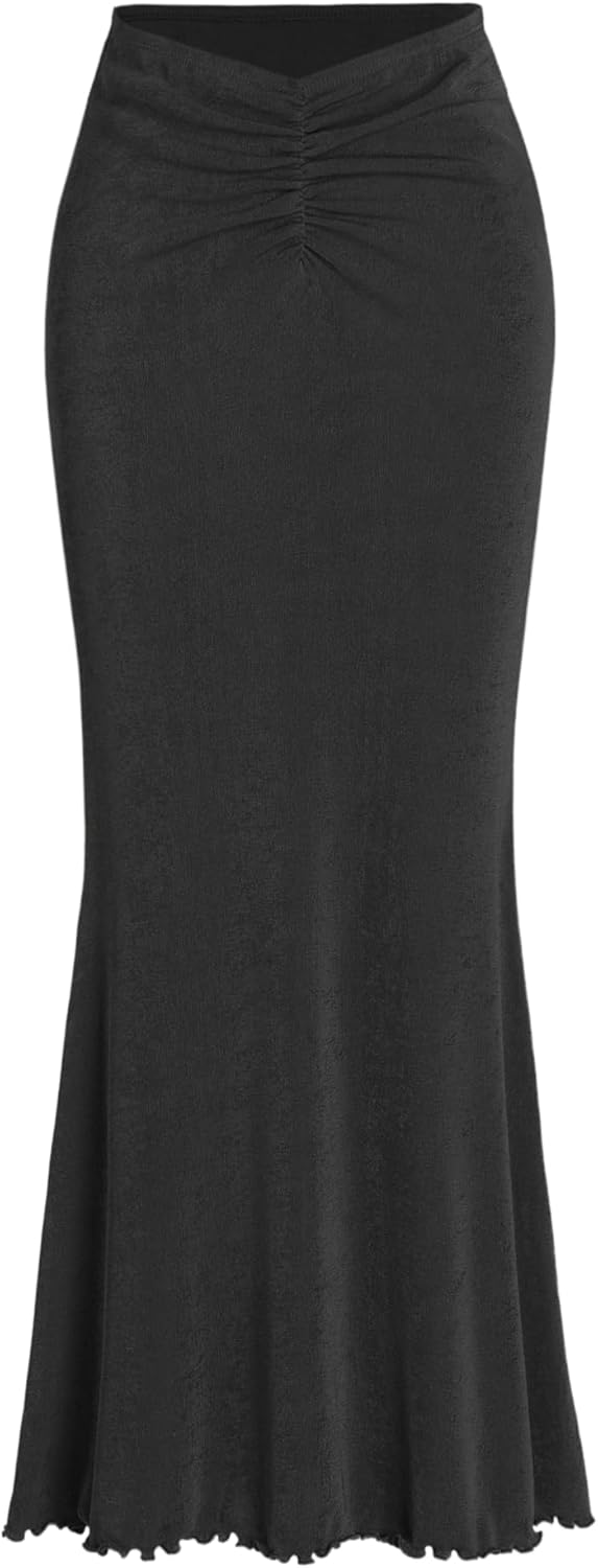- Elegant Design: The solid maxi skirt features a chic and elegant design that flatters any body shape. This high waisted skirt with a solid color and lettuce hem adds a touch of elegance to any event